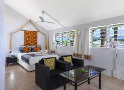 Our 1-Bedroom Beach Bungalows are ideal for families. They have one queen bed in the bedroom and 2 singles in the living area. A third single can be added by request and subject to availability (additional person rate applies). All rooms are air-conditioned and feature a private outdoor shower within the enclosed en-suite bathroom.